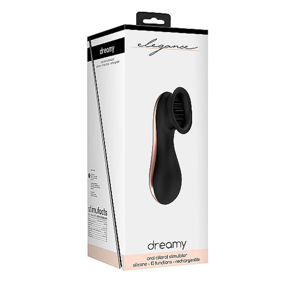 The Elegance Oral Clitoral Stimulator Dreamy is CE Certified, made from 100% silky smooth medical grade silicone, waterproof (IP67) and extremely quiet at under 60dB. It contains a rechargeable battery that when fully charged with its magnetic USB cable will provide 60 minutes of passionate playtime. Just click and charge!